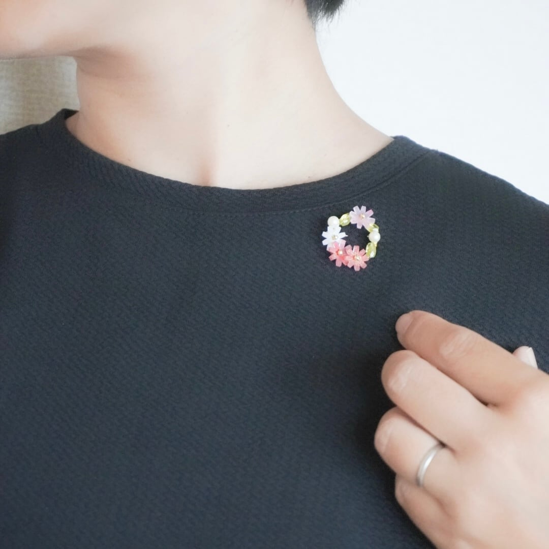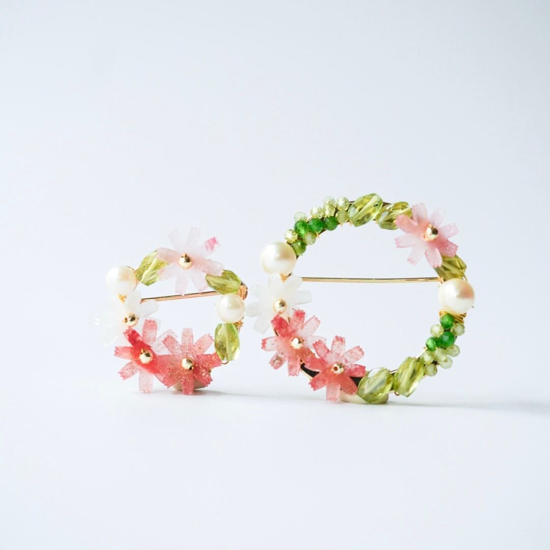 2つを重ねて着けると、コスモス畑のように華やかさが広がります。