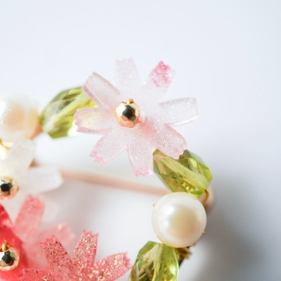 ※天然石やプラ板のお花パーツには色味や形に幅がありますがランダムでお作りしております