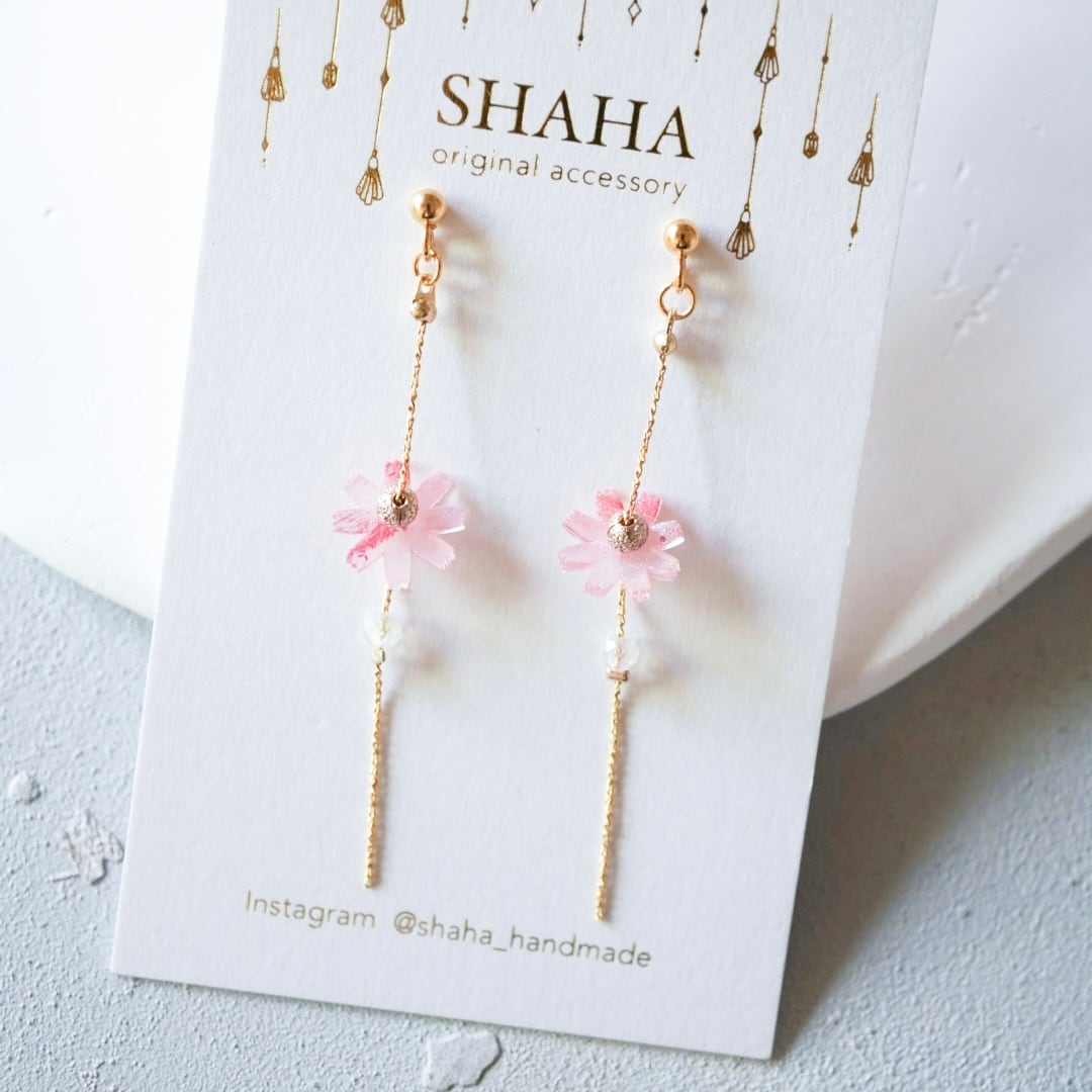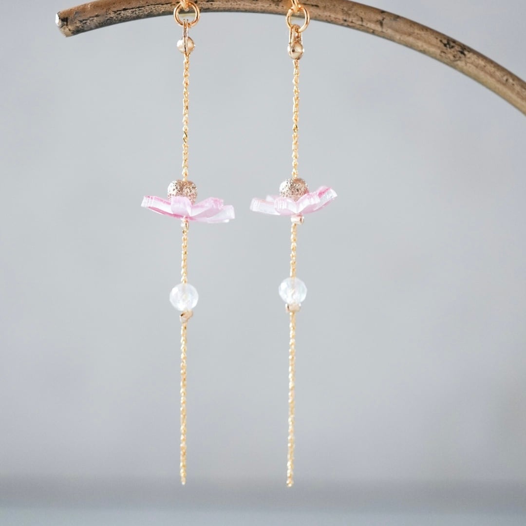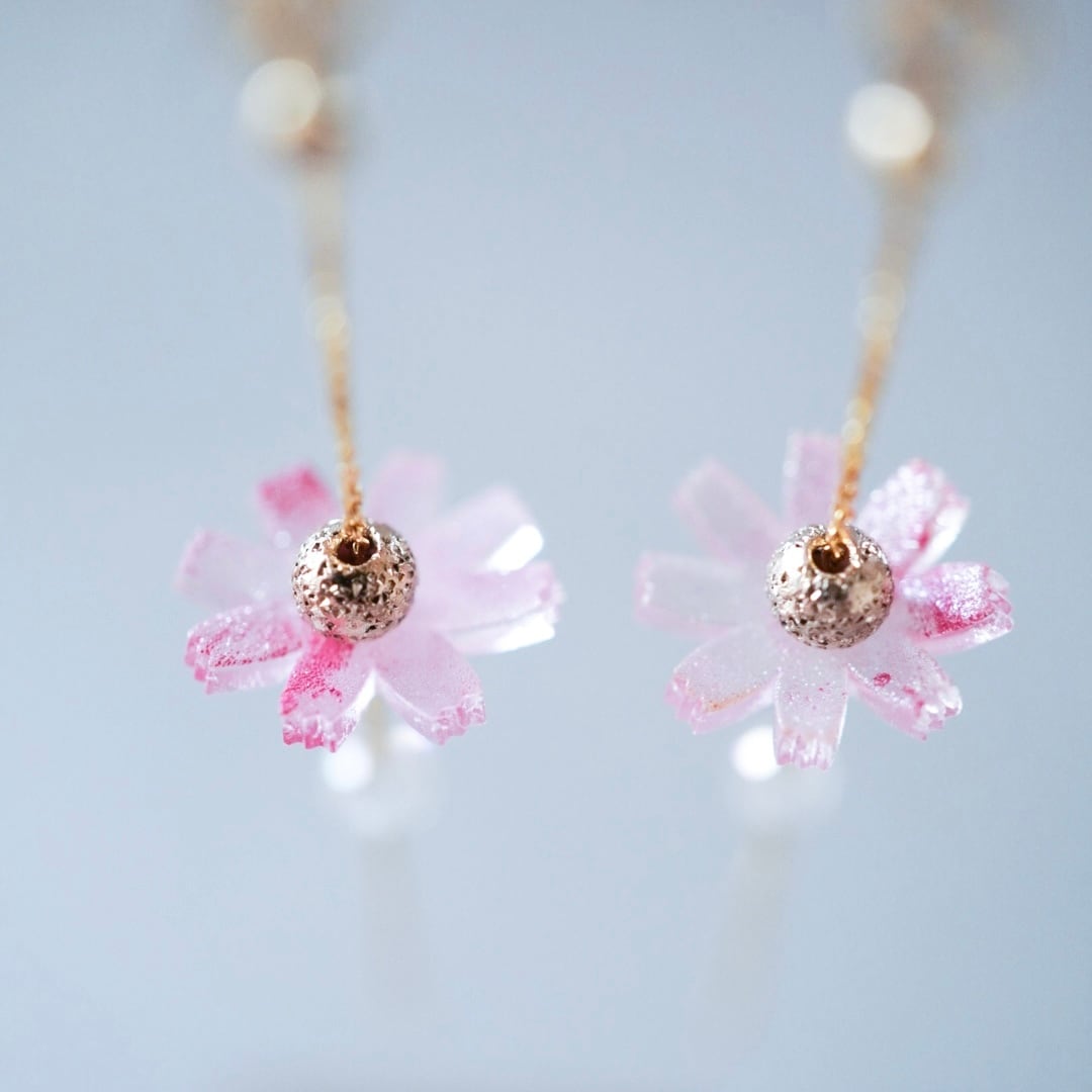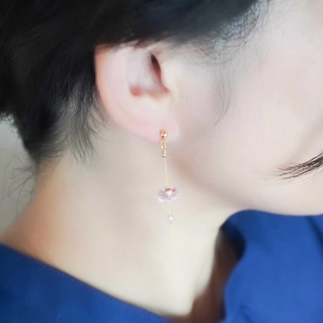 やわらかな色香と可憐な輝きを添える、フェミニンなコスモスイヤーアクセサリーです。