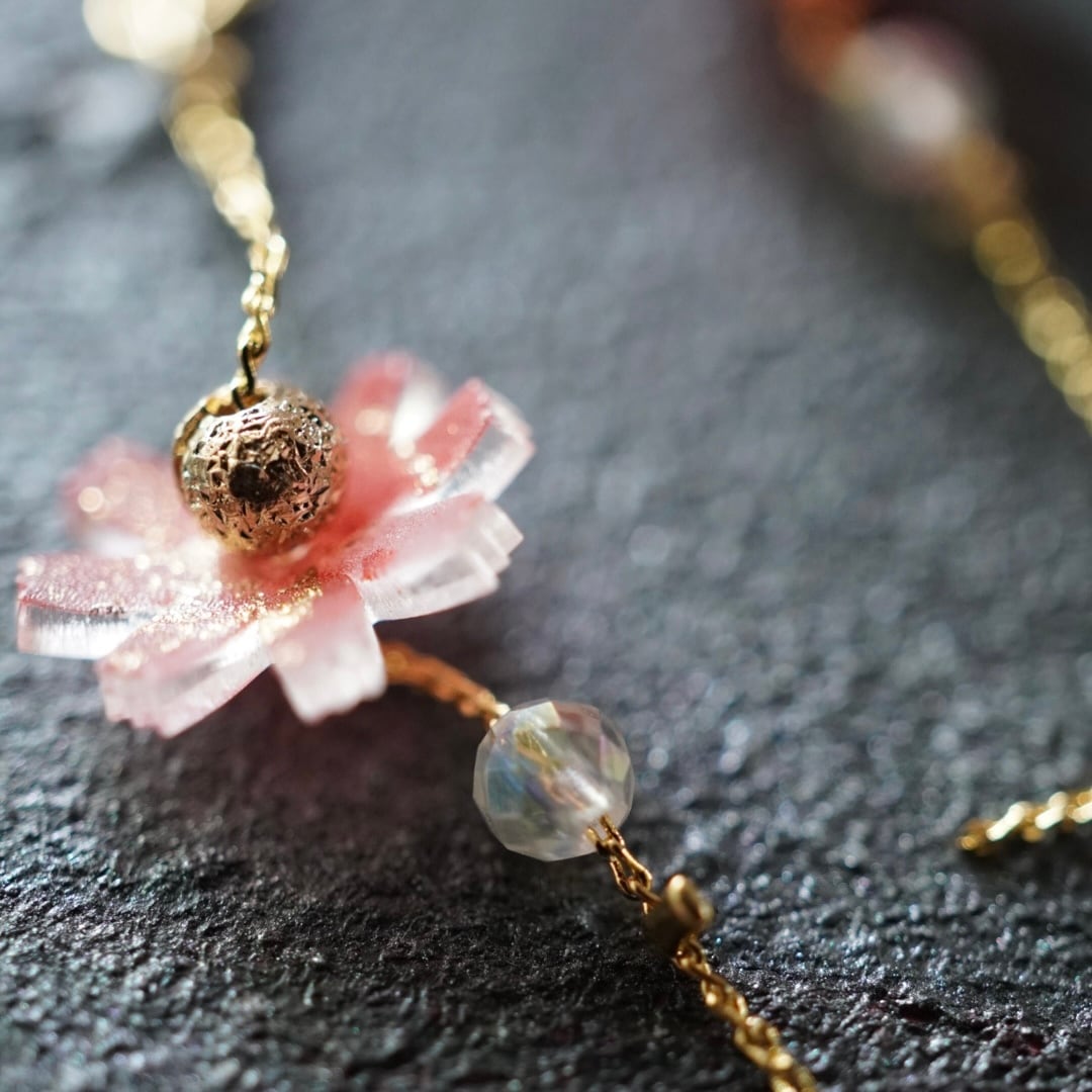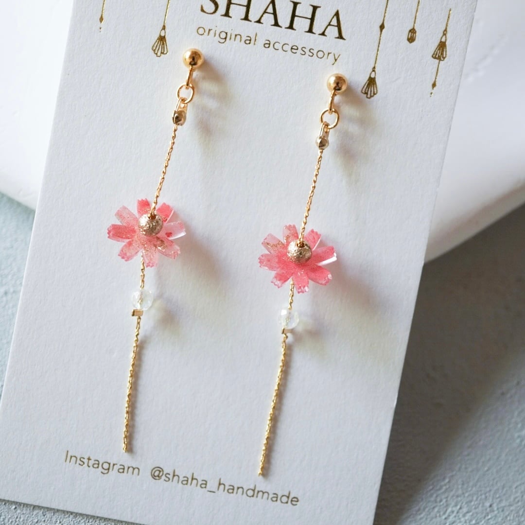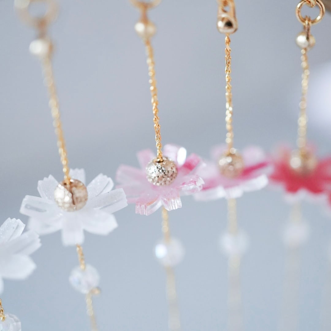 深みのある艶と温もりを感じさせる、上品で大人なコスモスイヤーアクセサリーです。
