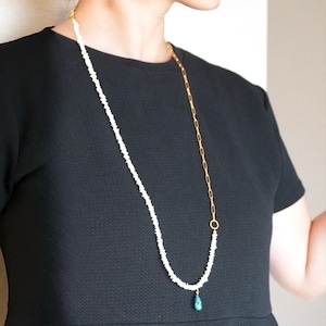 その日の気分で、ロングにさらりとつけても、二重でこなれ感を出しても美しく映えるデザインです