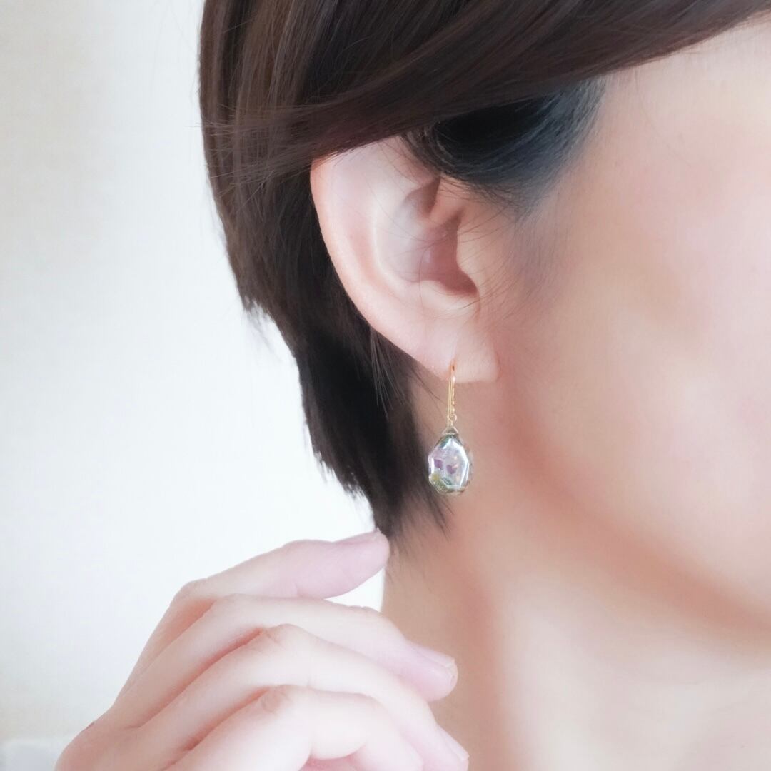 厚みのあるしっかりとした石を使用していますが、透明感があるため重たく見えず、耳元に軽やかな存在感を添えてくれます。