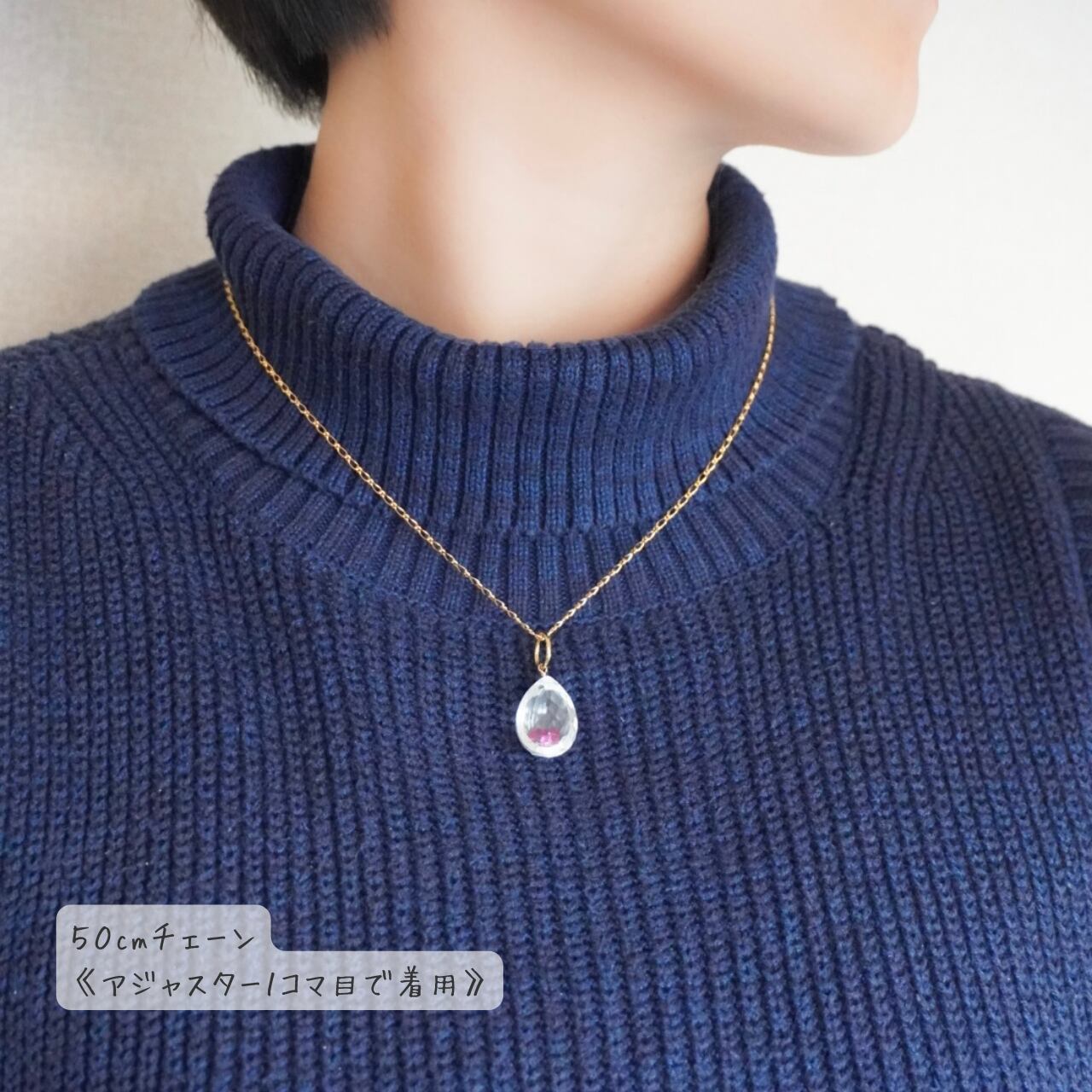ネックレスの後ろには、エンドを含めた全長約 5.3cmのアジャスターチェーンをお付けしています。
