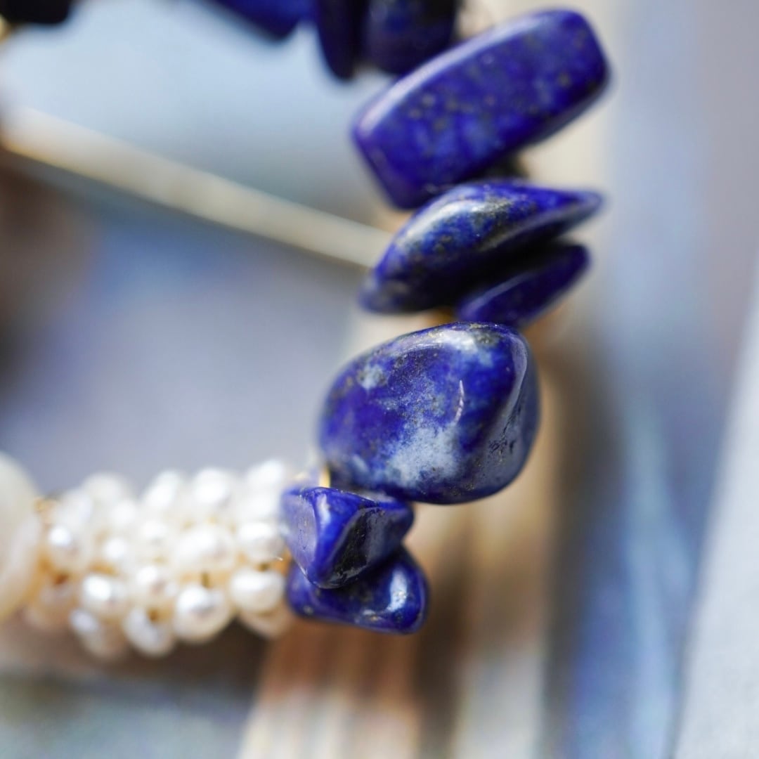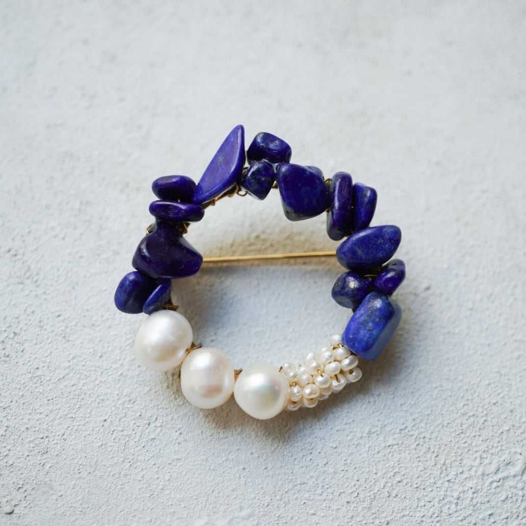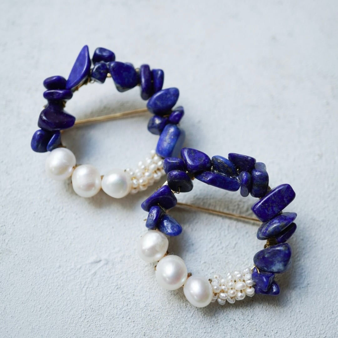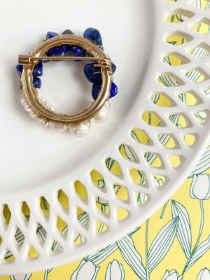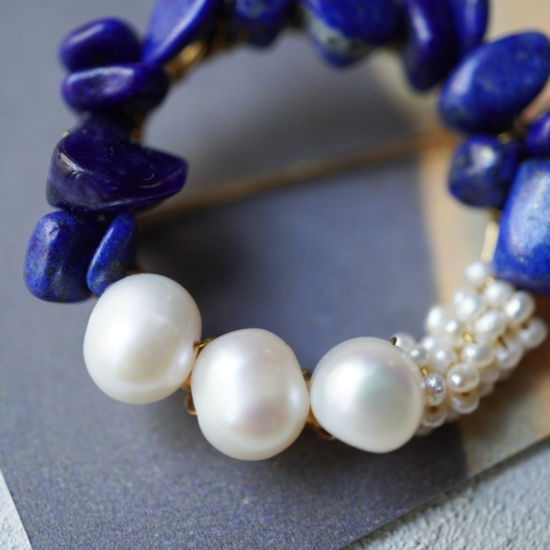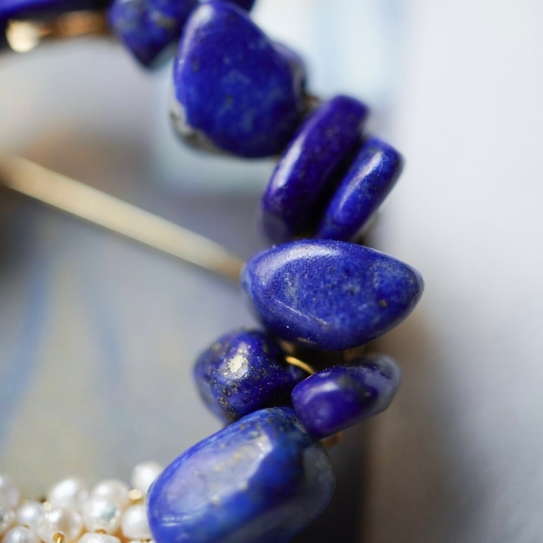 このブローチにも天然石ラピスラズリを