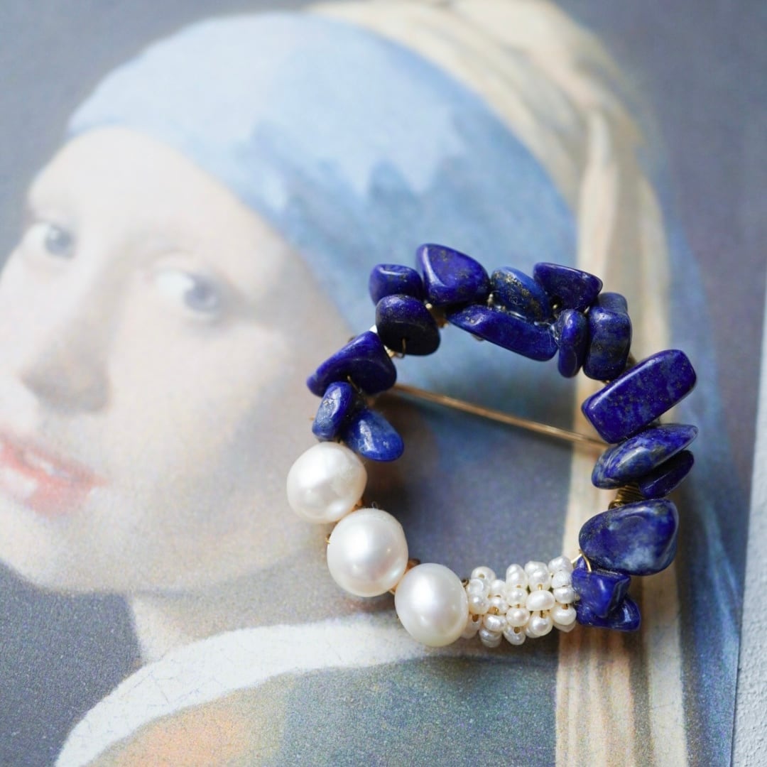 《真珠の耳飾りの少女》からインスピレーションを受け、制作したブローチになります。