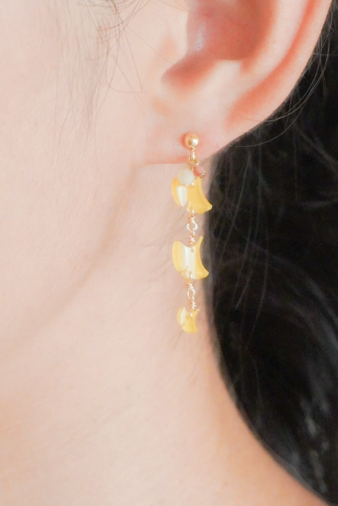 天然石イエローオパールとファインボールインクォーツで表したイヤーアクセサリーになります。
