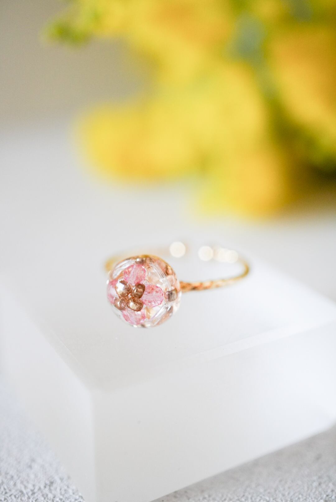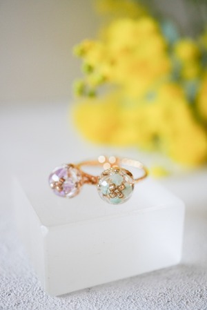 「リングはひっかかりが気になる」というお客様のお声から生まれた、パーツ部分をまるっとレジンコーティングしたコロッと可愛い《つやつや》タイプになります。