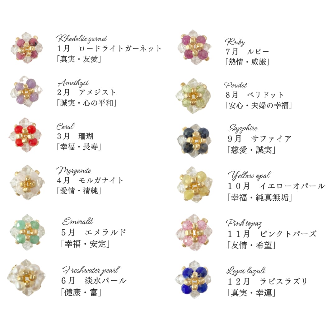 天然石の項目の最後のアルファベットは各天然石の頭文字になります。