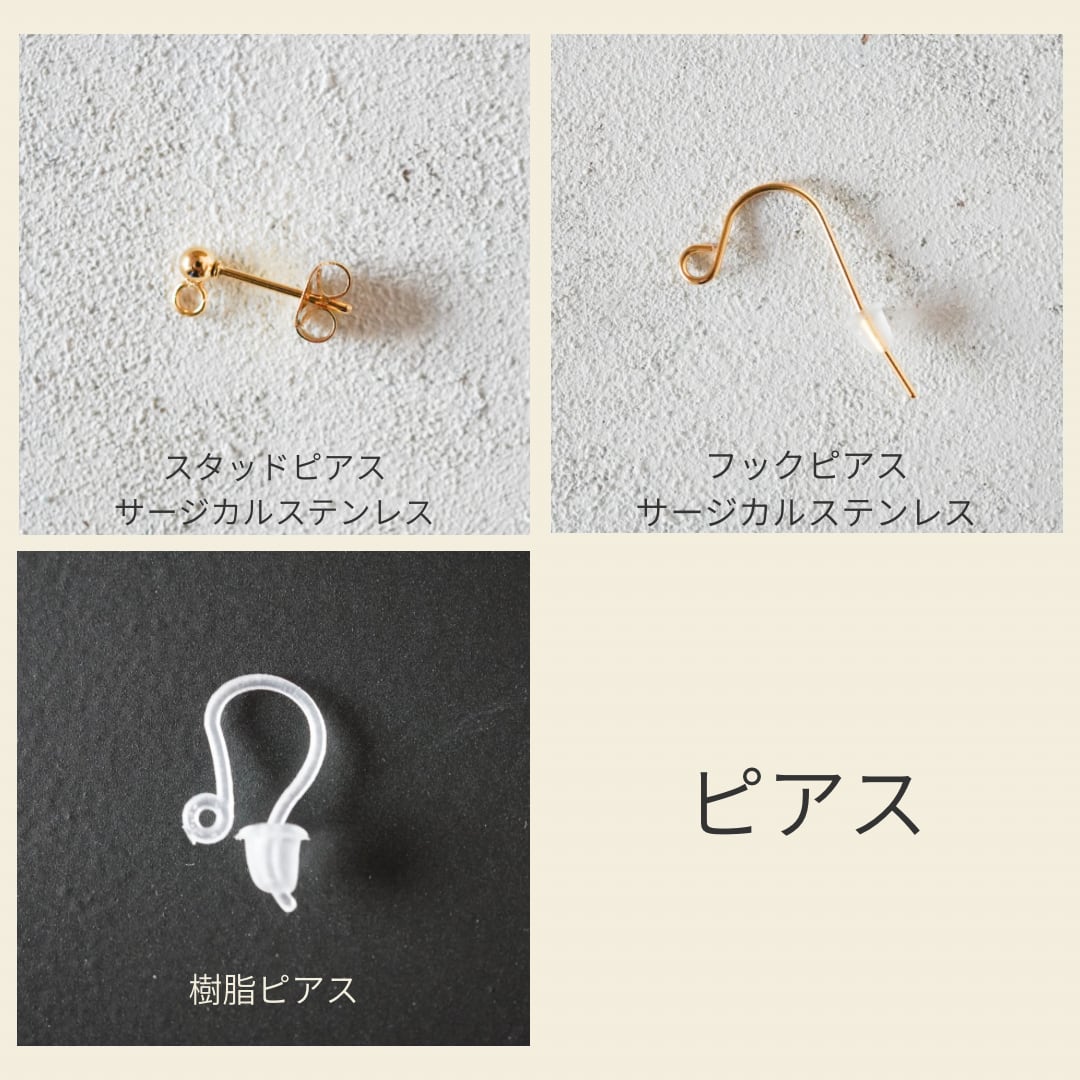 *ほとんどの作品にアレルギー対応のピアス・イヤリングをご用意しておりますが、金属アレルギーには個人差がございます。