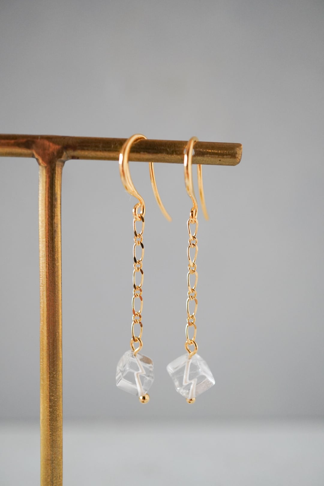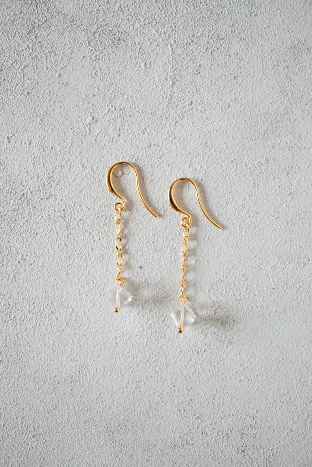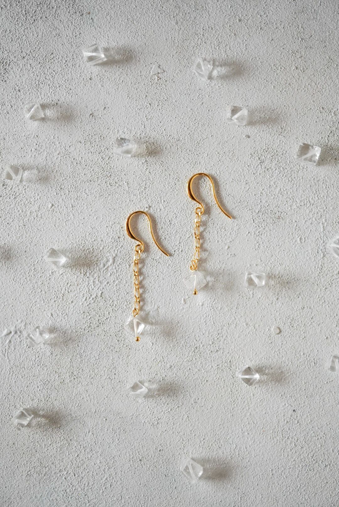 ラフなカットのクリスタルをワイヤーでチェーンに繋ぎ