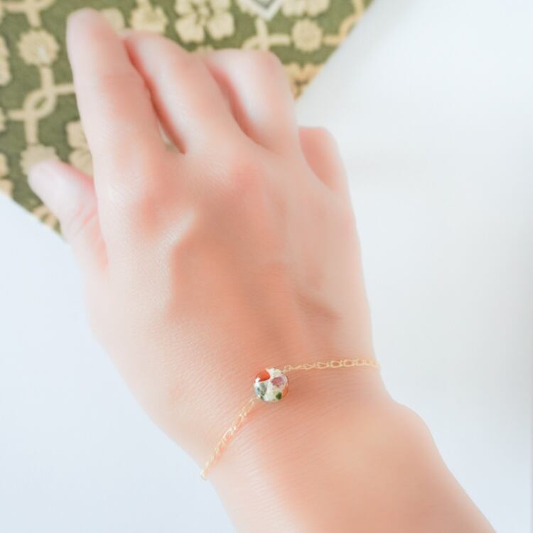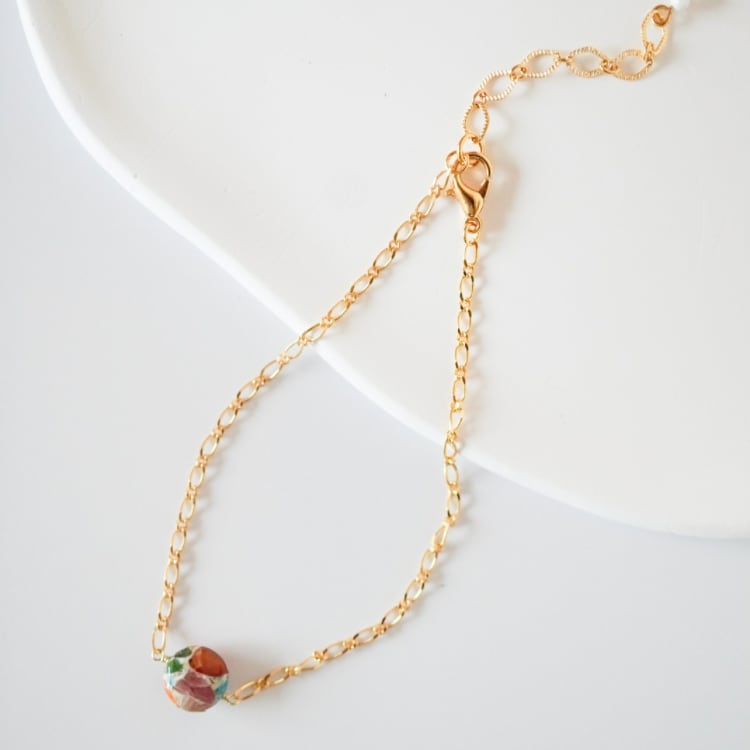 人気の天然石、アパタイト・トルマリン・カーネリアン・ガーネットを細かくし圧縮形成したコンポジットストーンをトップにあしらったレインボーカラーながら上品でシンプルな細身ブレスレットです