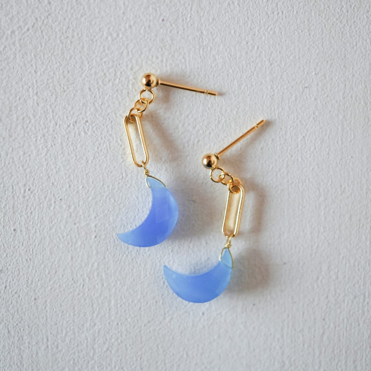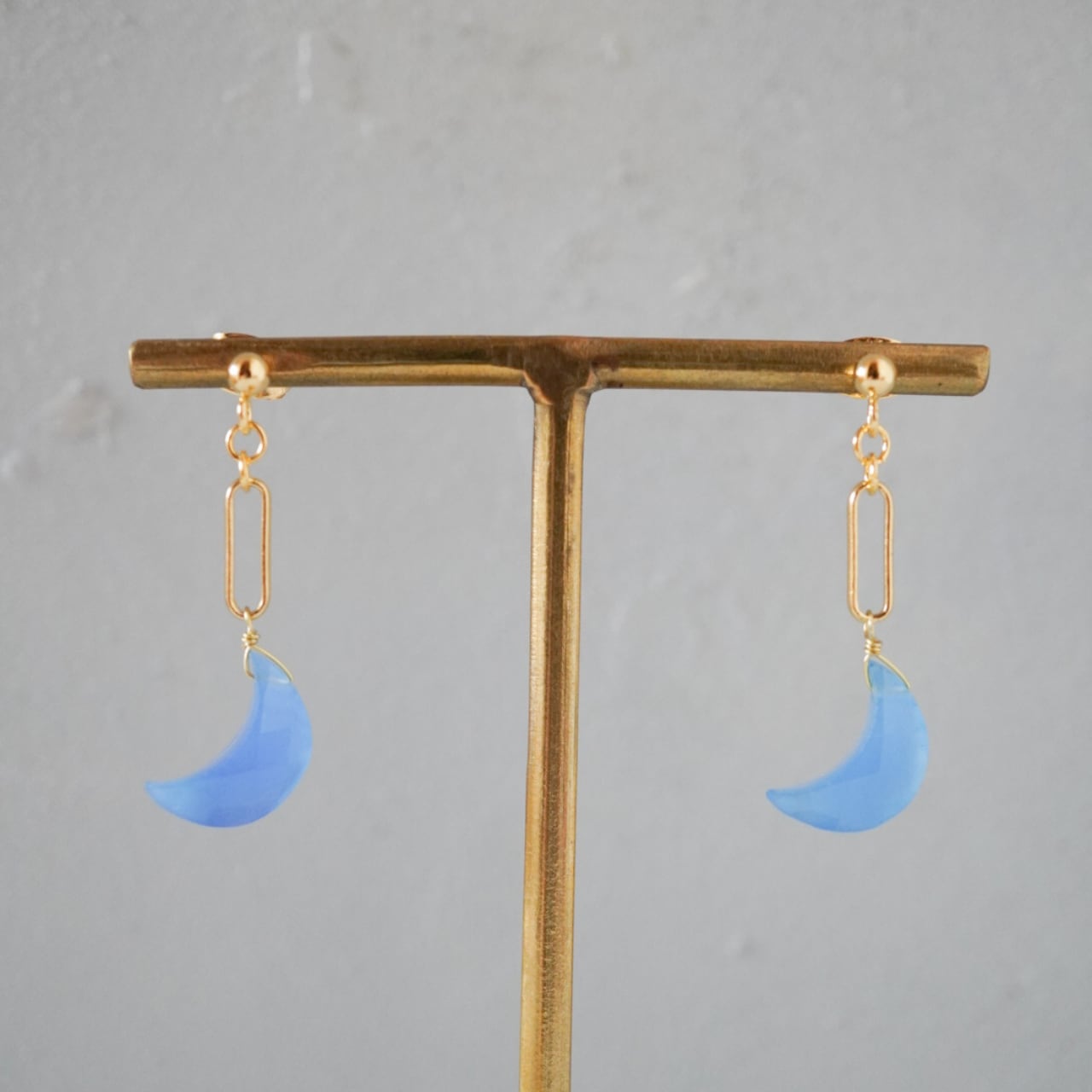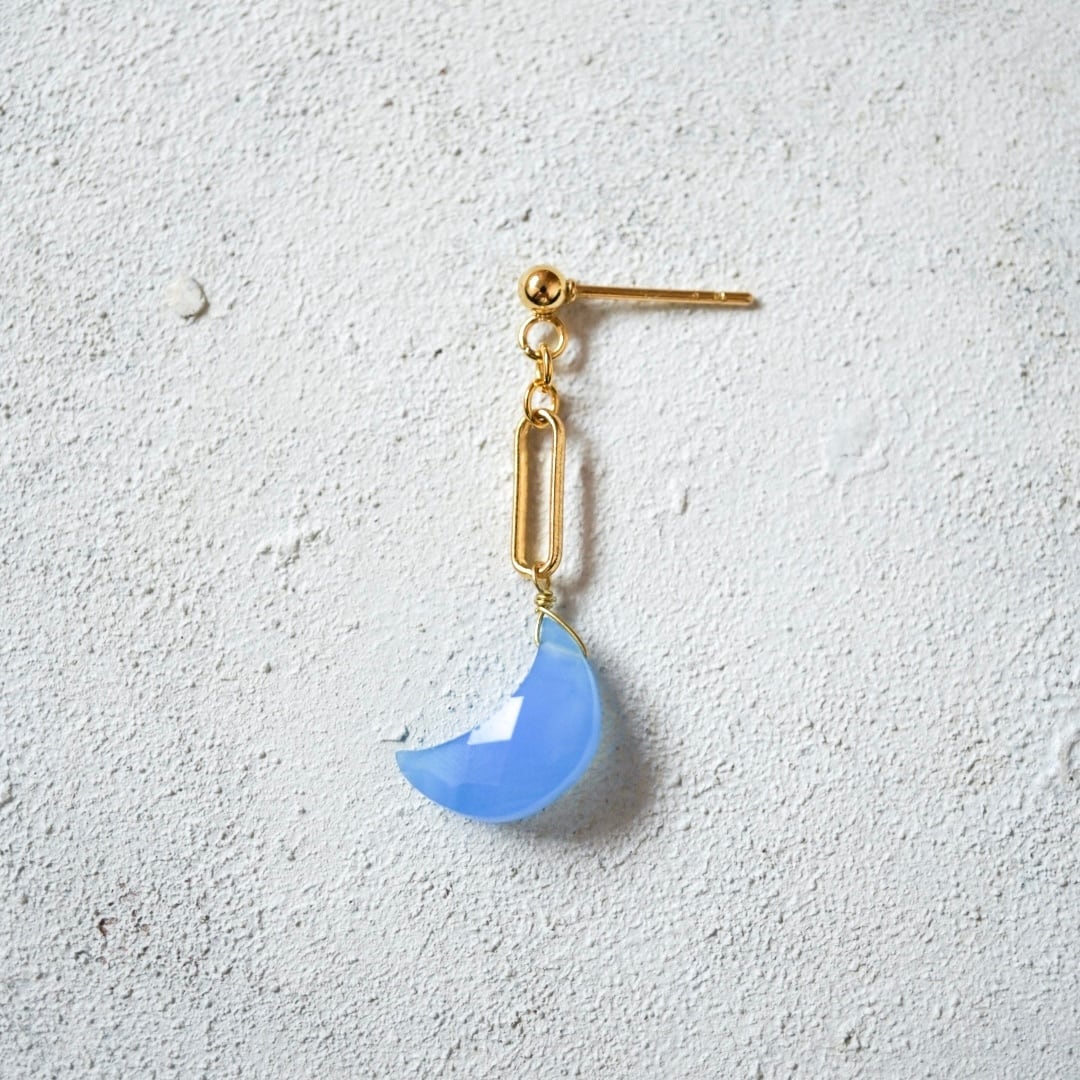 カラーカルセドニーの乳白色ブルー三日月型《片耳》ピアス/イヤリングです