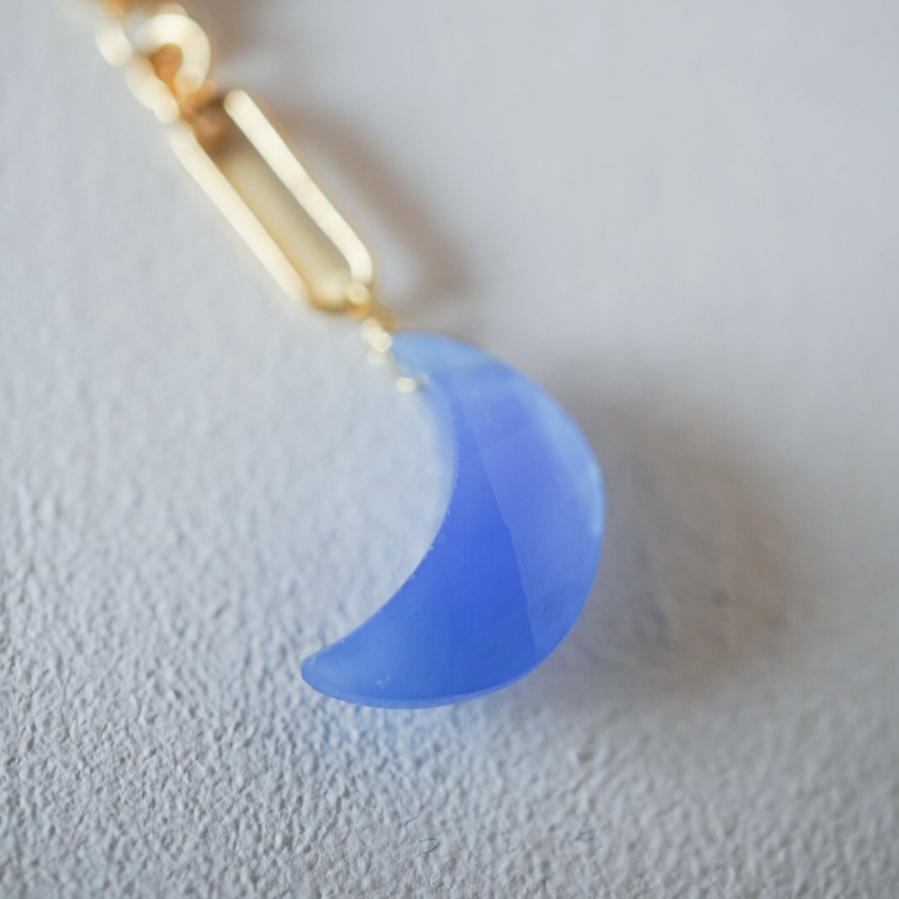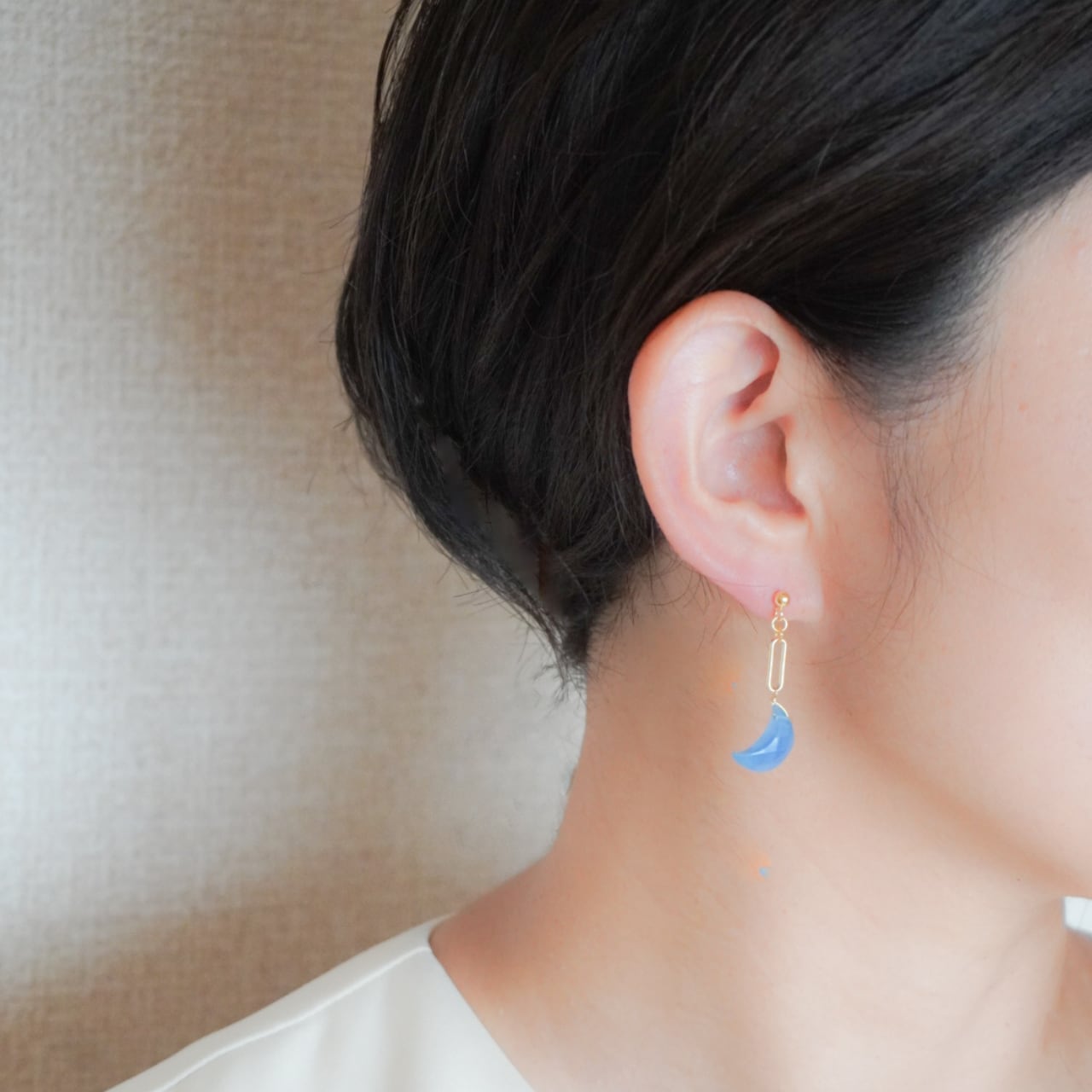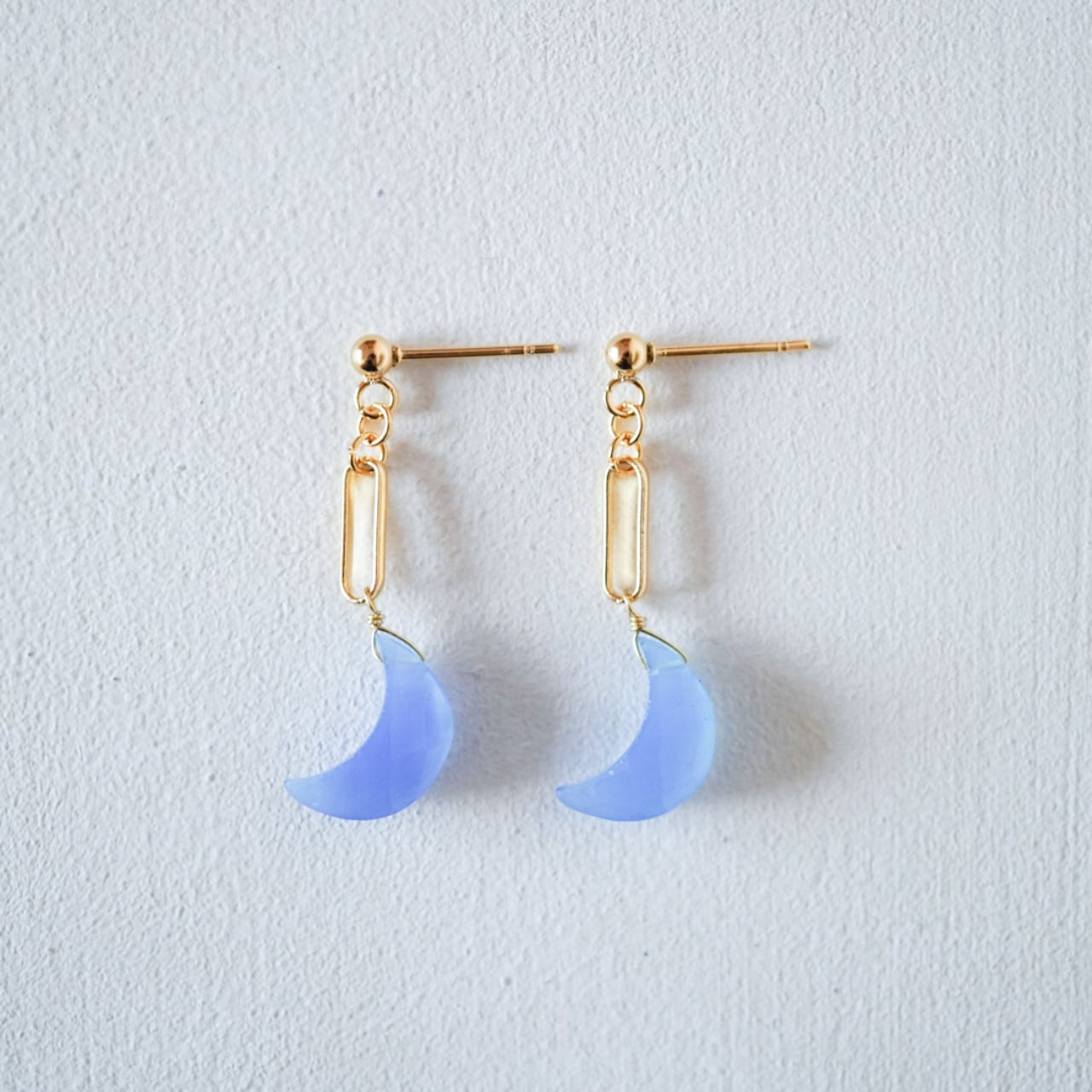 カラーカルセドニーの乳白色ブルー三日月型《片耳》ピアス/イヤリングです